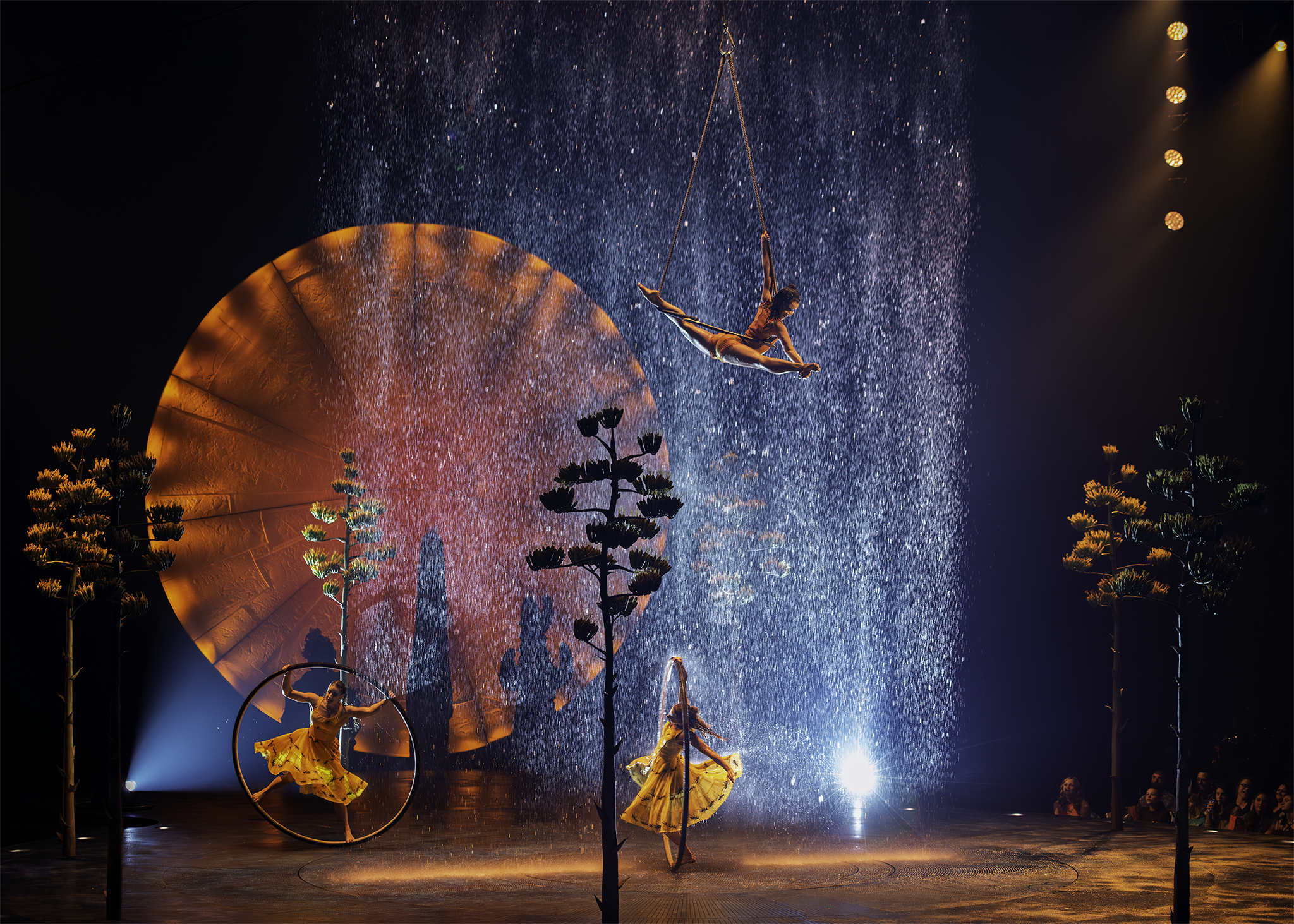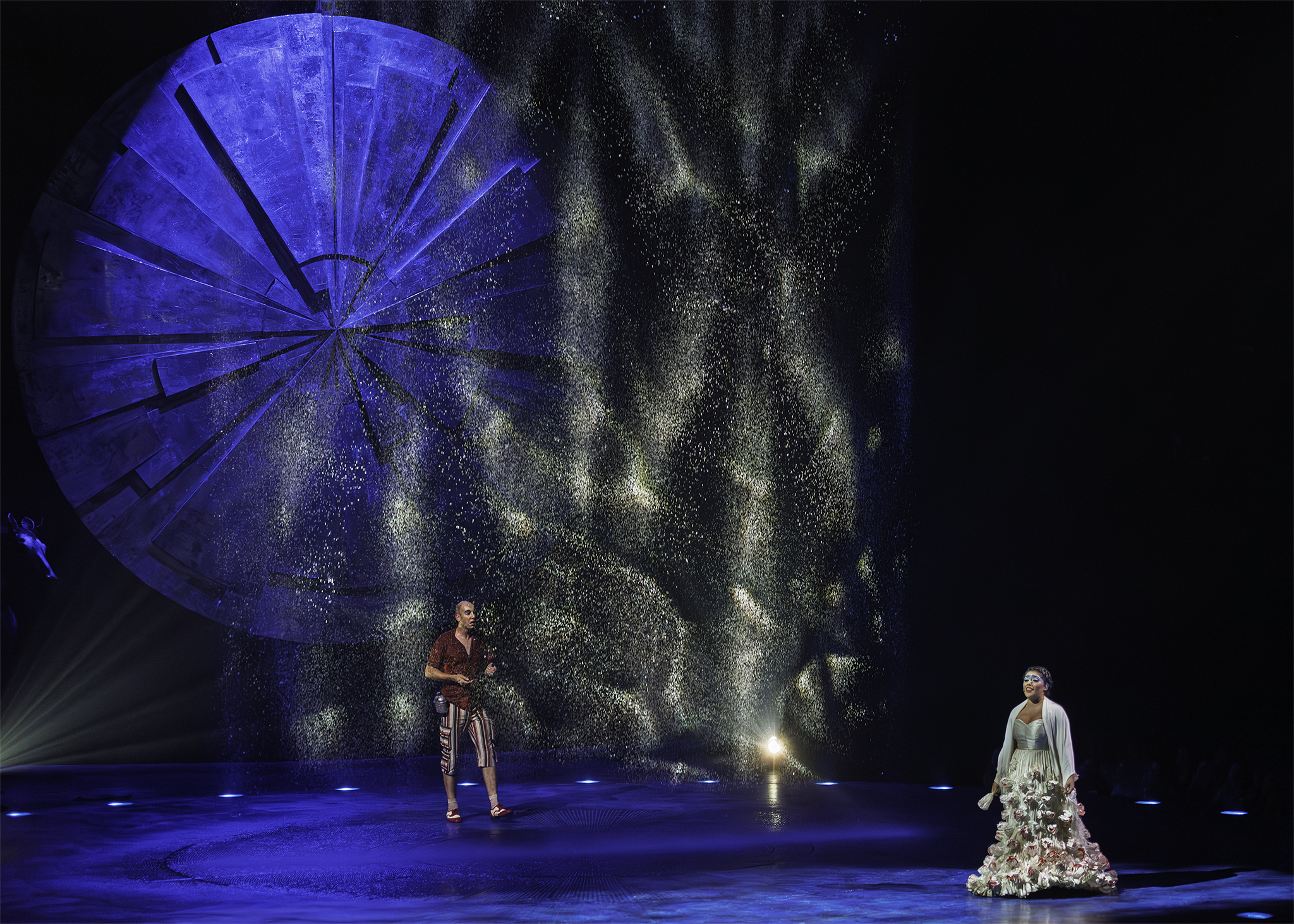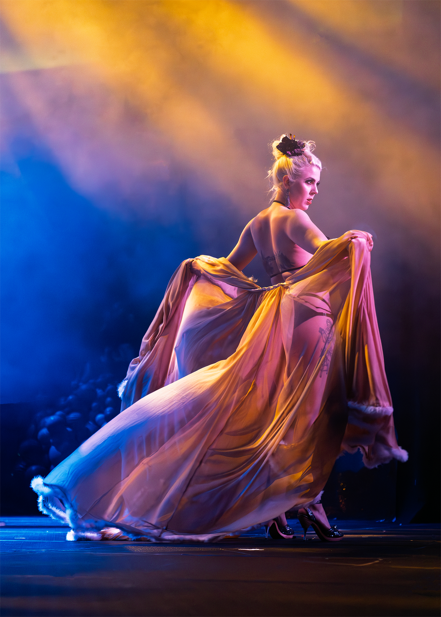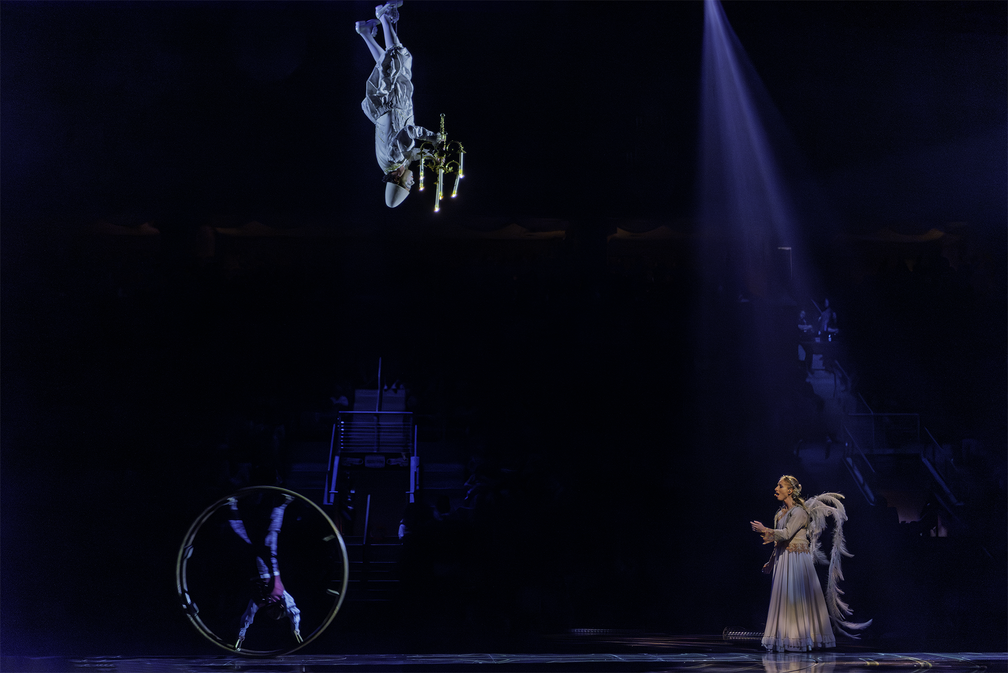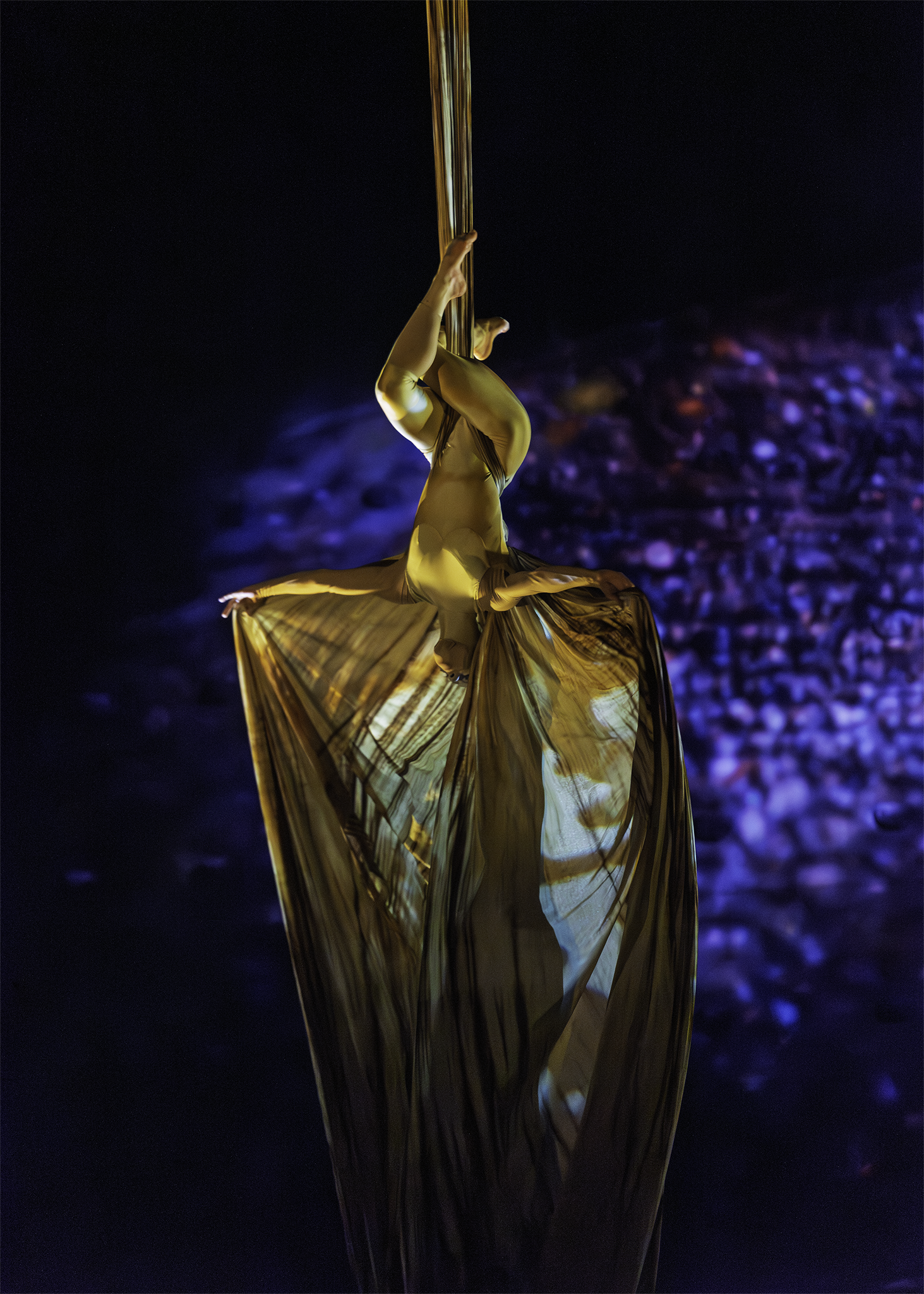 Establishing Shots: Wide-angle views of the stage and audience, providing context and scale.